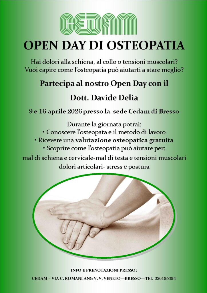 Soffri di tensioni muscolari, emicranie o fastidi a schiena e collo? Il 9 e il 16 aprile 2026, presso la sede Cedam di Bresso, avrai l’opportunità di incontrare il Dott. Davide Delia per una giornata dedicata alla salute del corpo.